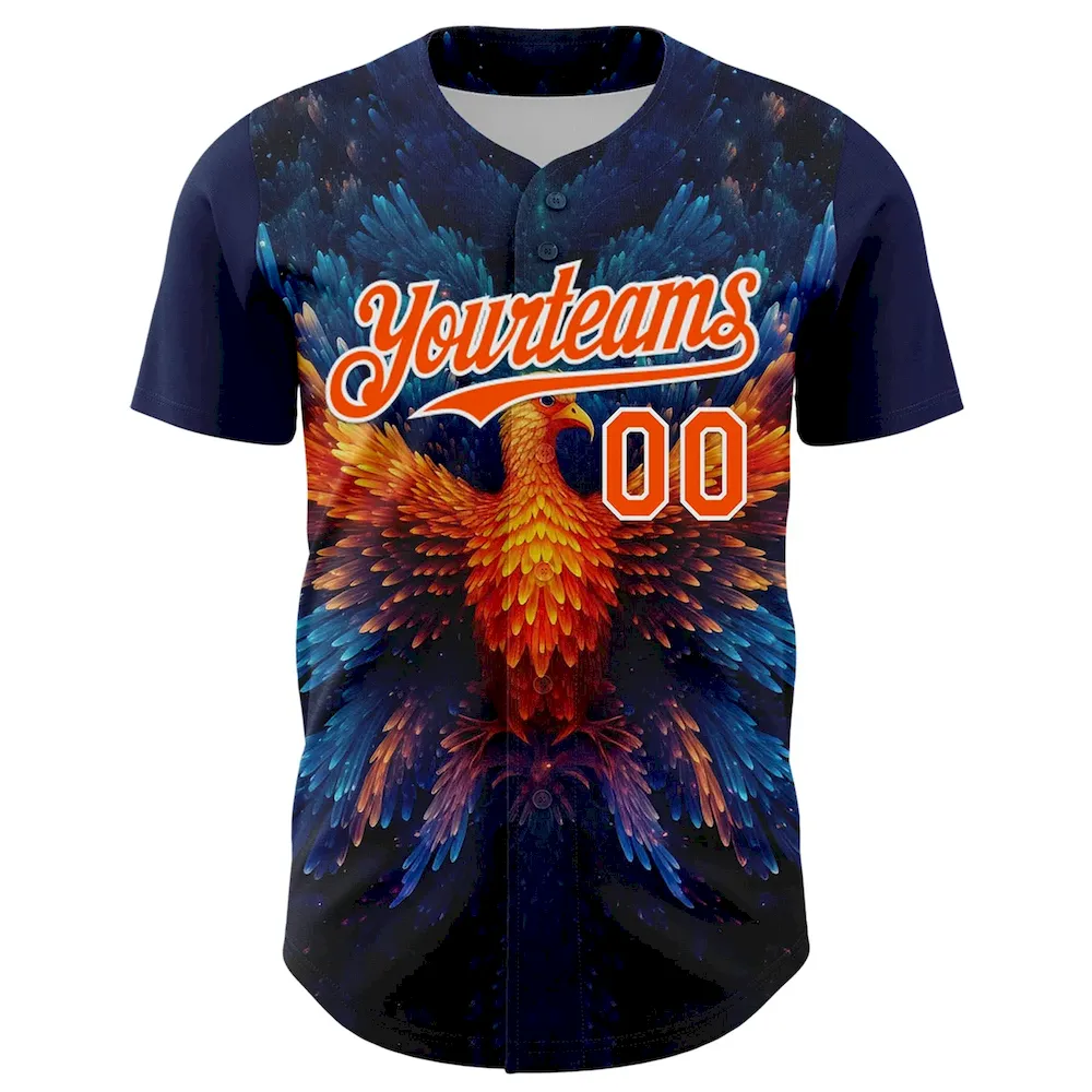 Custom Navy Orange-White 3D Pattern Design Rave Phoenix Authentic Baseball Jersey