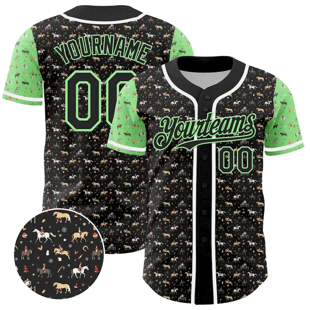 Custom Black Pea Green-White 3D Pattern Design Rodeo Cowboy Authentic Baseball Jersey