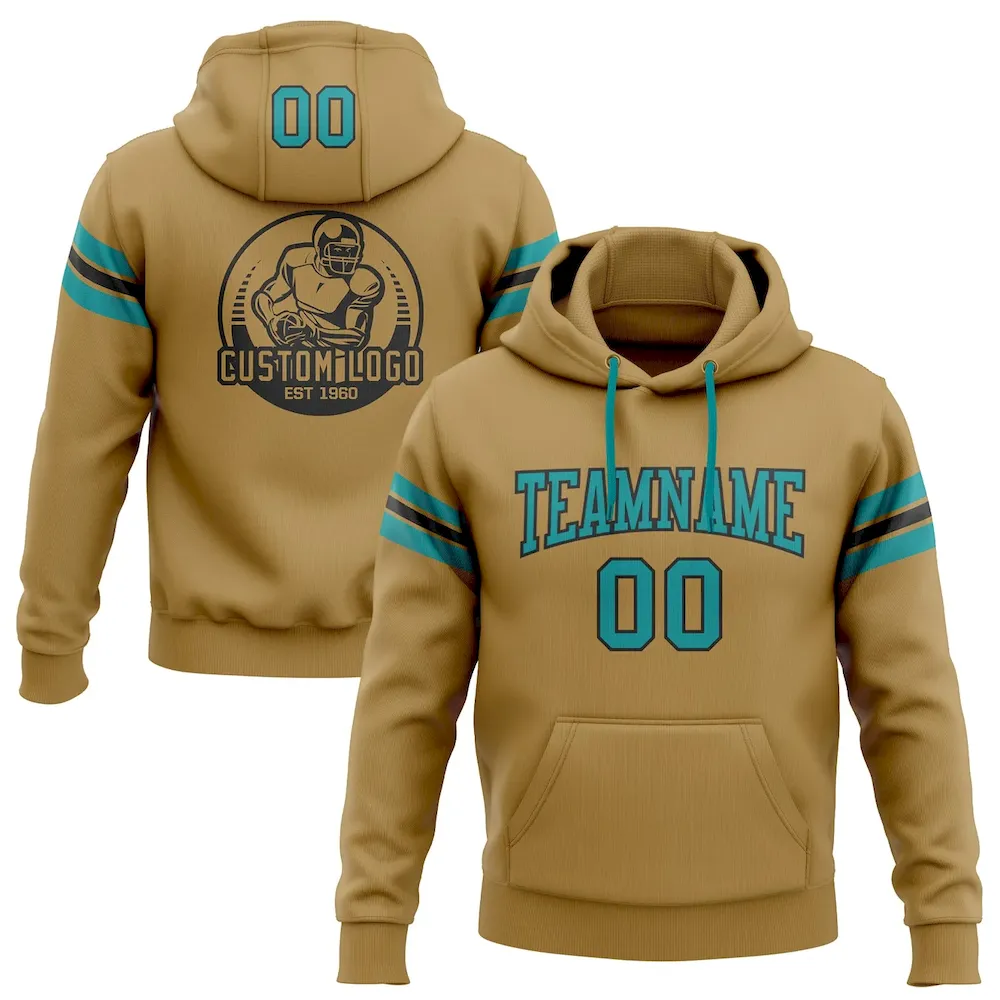 Custom Stitched Old Gold Teal-Black Football Pullover Sweatshirt Hoodie