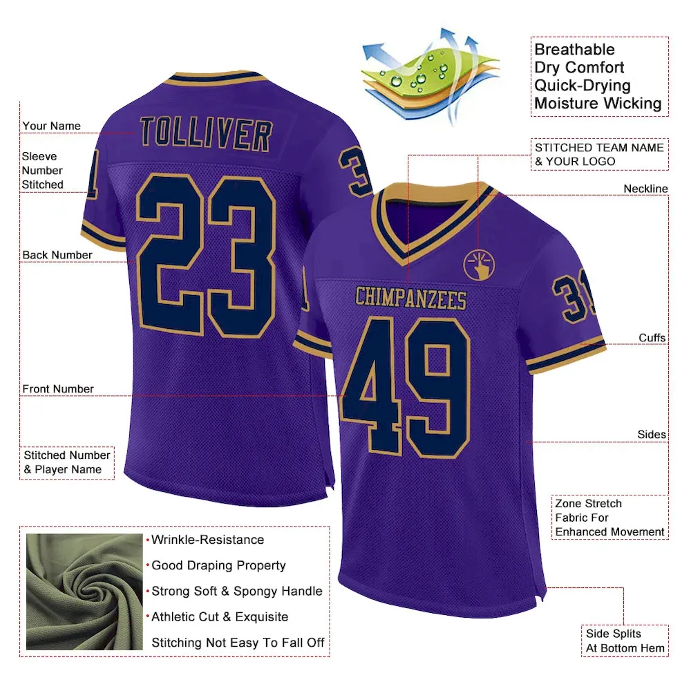 Custom Purple Navy-Old Gold Mesh Authentic Throwback Football Jersey