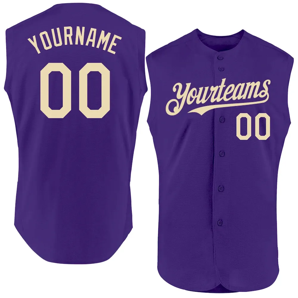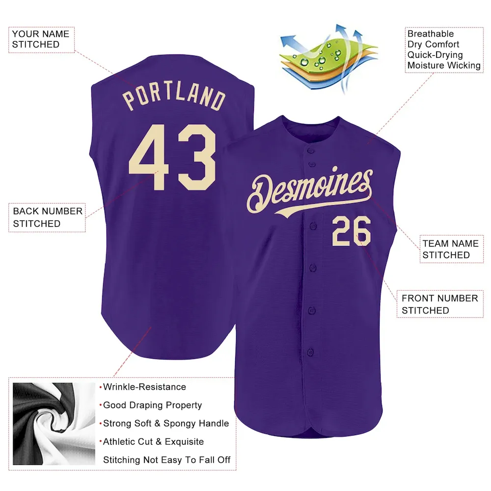 Custom Purple Cream Authentic Sleeveless Baseball Jersey