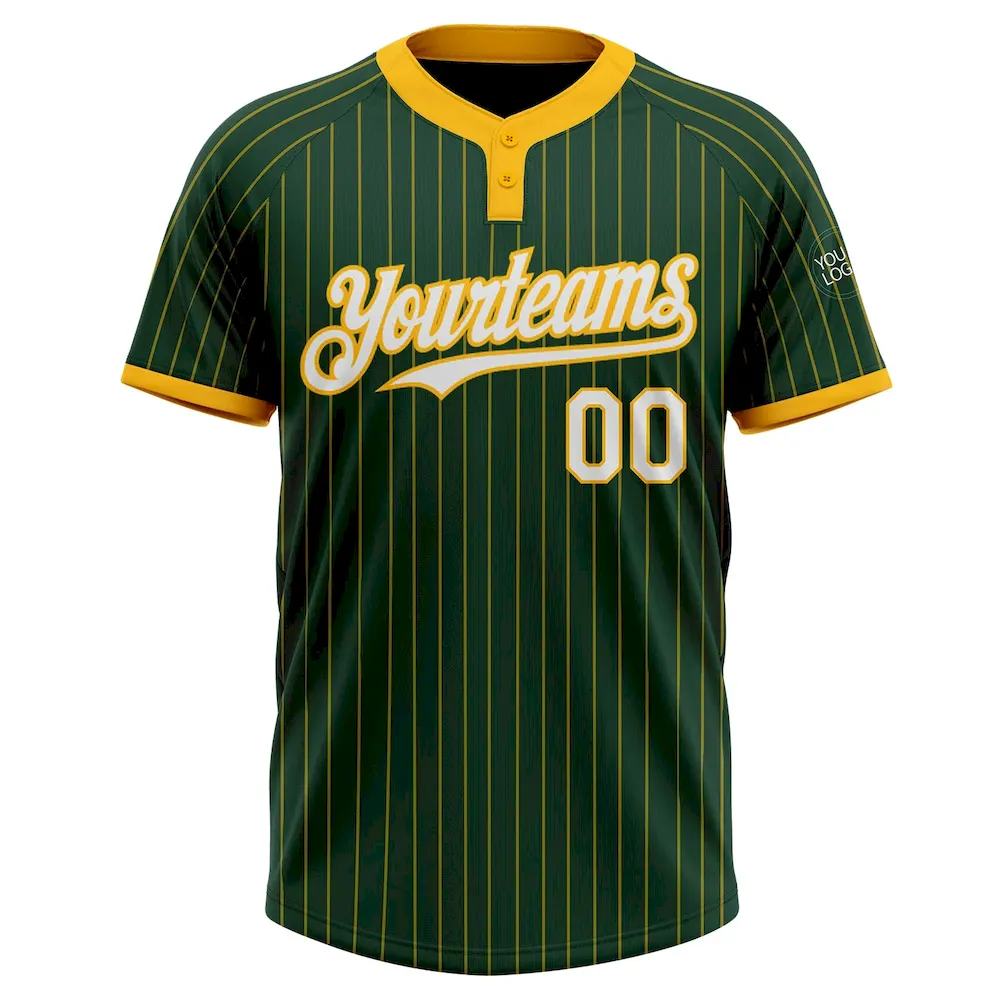 Custom Green Gold Pinstripe White Two-Button Unisex Softball Jersey