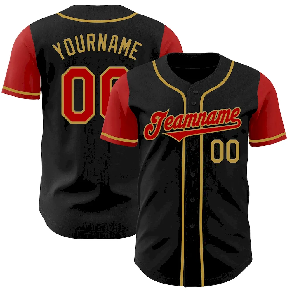 Custom Black Red-Old Gold Authentic Two Tone Baseball Jersey