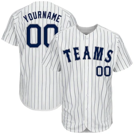 Custom White Navy Pinstripe Navy-Gray Authentic Baseball Jersey