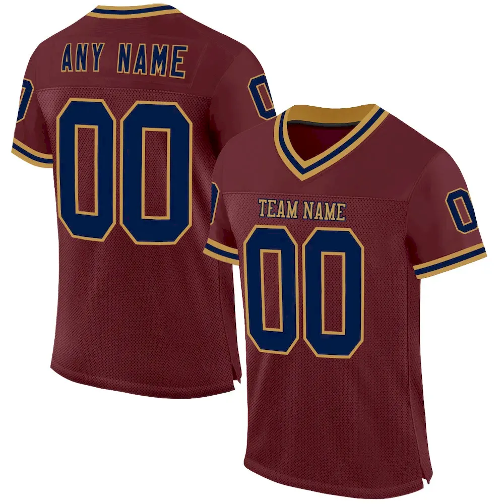 Custom Burgundy Navy-Old Gold Mesh Authentic Throwback Football Jersey
