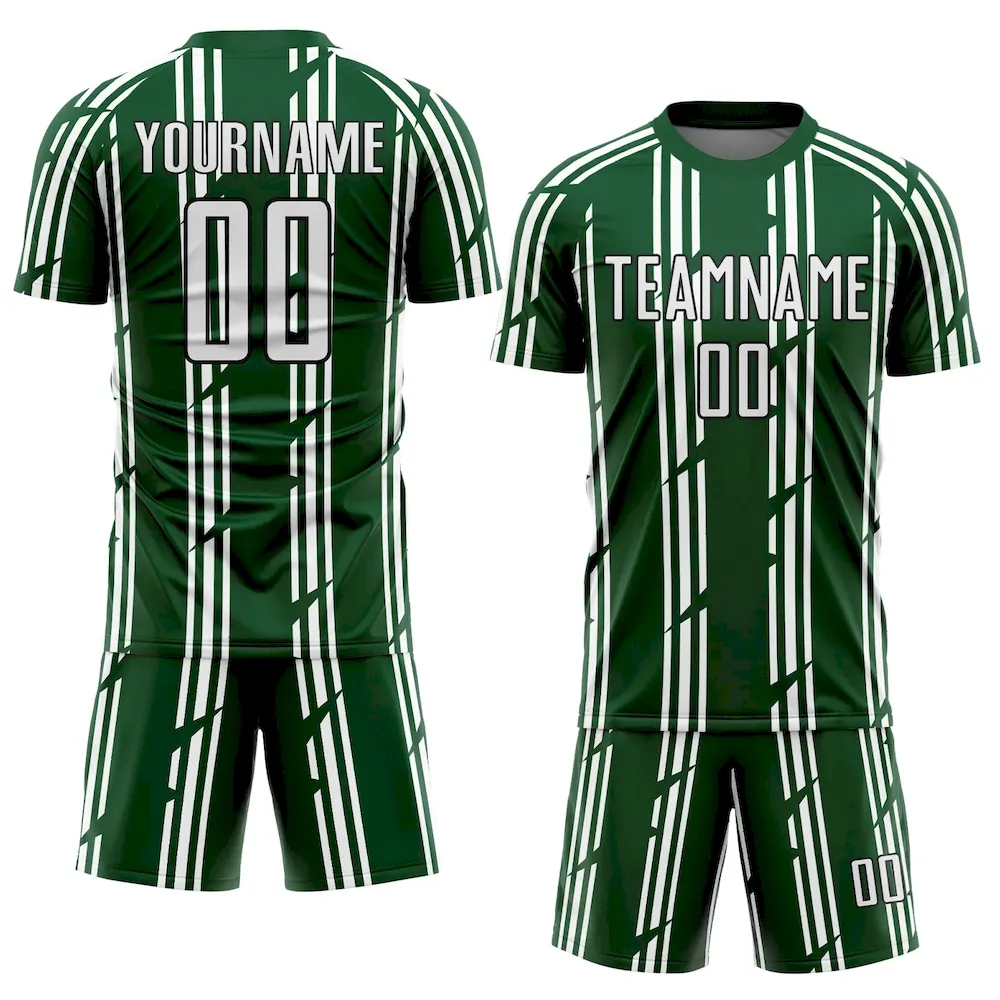 Custom Green White-Black Pinstripe Sublimation Soccer Uniform Jersey