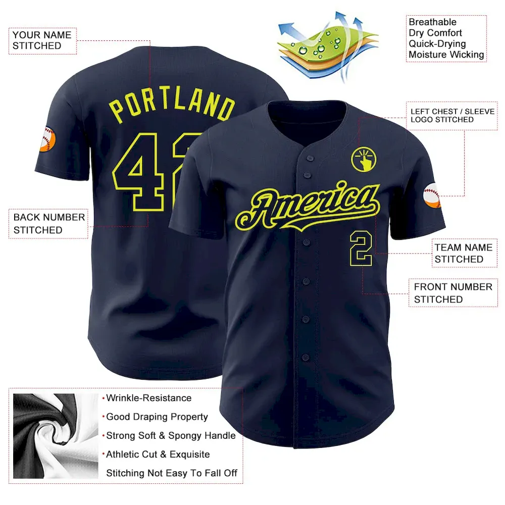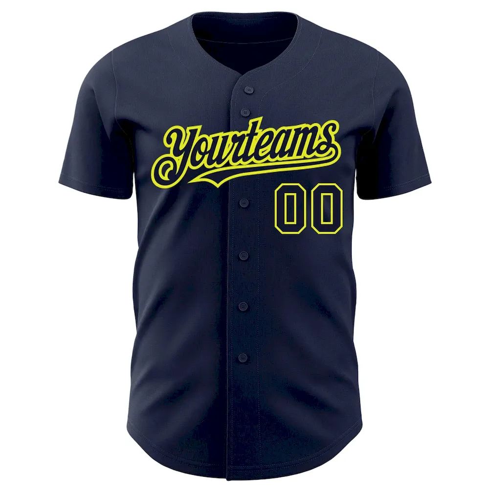Custom Navy Neon Yellow Authentic Baseball Jersey
