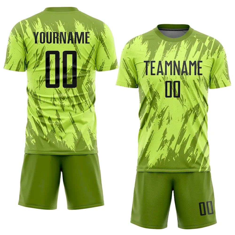 Custom Neon Green Black-Olive Sublimation Soccer Uniform Jersey