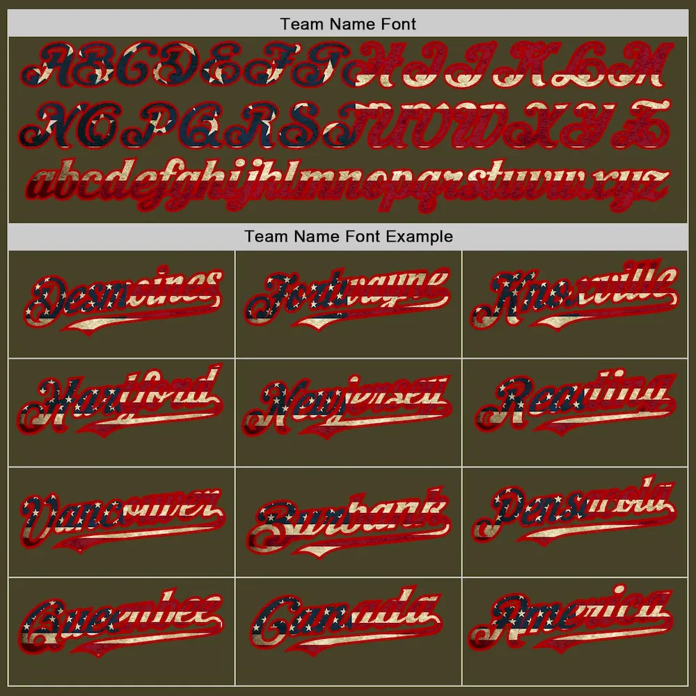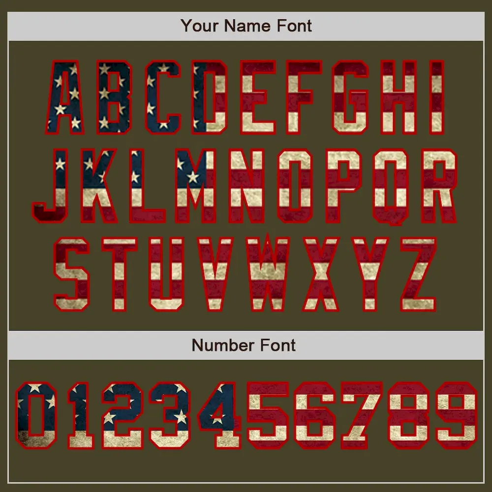 Custom Olive Vintage USA Flag Cream-Red Pinstripe Authentic Split Fashion Salute To Service Baseball Jersey