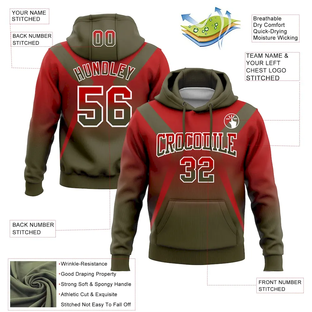 Custom Stitched Red Olive-White Fade Fashion Arrow Sports Pullover Sweatshirt Hoodie